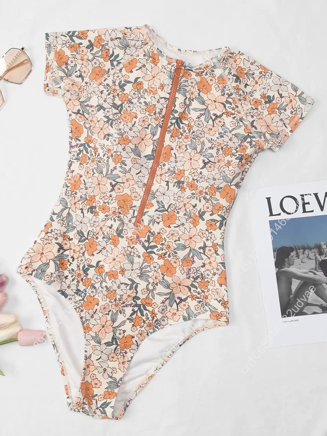Designed for the modern woman seeking both style and functionality, this Ditsy Zipper Short Sleeve One-Piece Swimsuit combines contemporary design with practical features. Crafted from premium polyester, this swimsuit offers durability and comfort for extended wear. The true-to-size fit ensures a flattering silhouette, while the mid-waist cut provides classic proportions. Featuring a convenient front zipper and short sleeves for added coverage, this piece is perfect for beach outings and poolside relaxation. The wire-free support system delivers comfort without compromise, and the integrated padding offers subtle shaping. With its solid pattern and beach-ready aesthetic, this swimsuit transitions effortlessly from water to shore. Ideal for summer 2025, it's a versatile essential that balances elegance with everyday wearability.